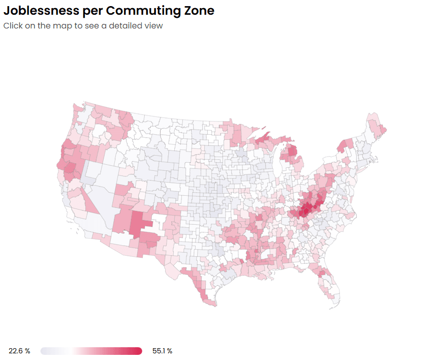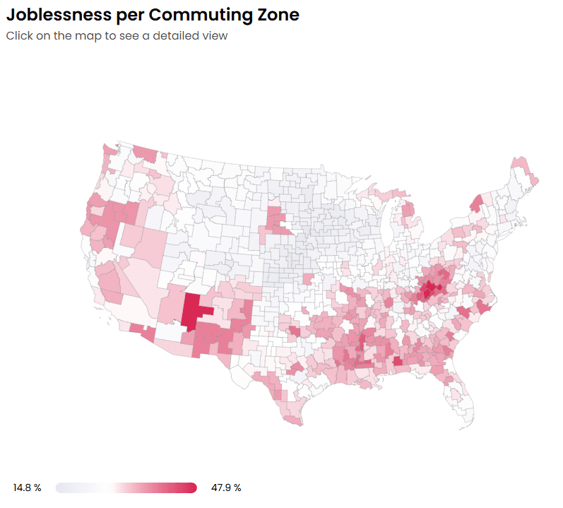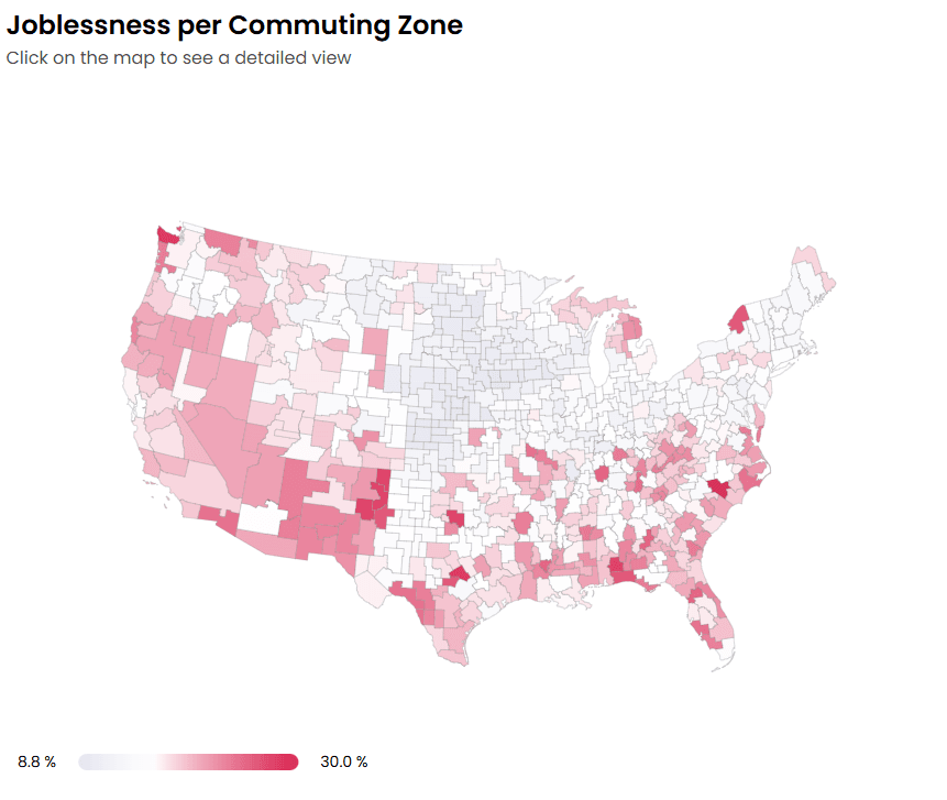 In another post, we explain what joblessness is and why we use it on this platform. With this post we show how to get into the data on joblessness, and we cover some major takeaways.
